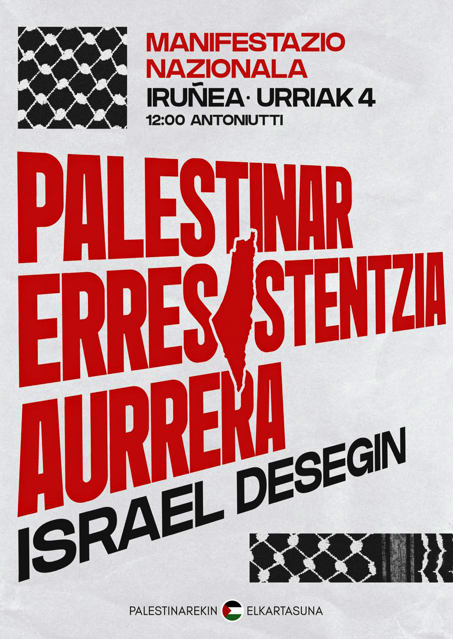 Bi urte pasa dira Urriaren 7tik. Bi urteotan historiako genozidio lazgarrienetako bat gauzatu du sionismoak Palestinan. Eta halere, palestinar herriaren erresistentzia grina ez da itzali, ezta haren aldeko elkartasuna ere!