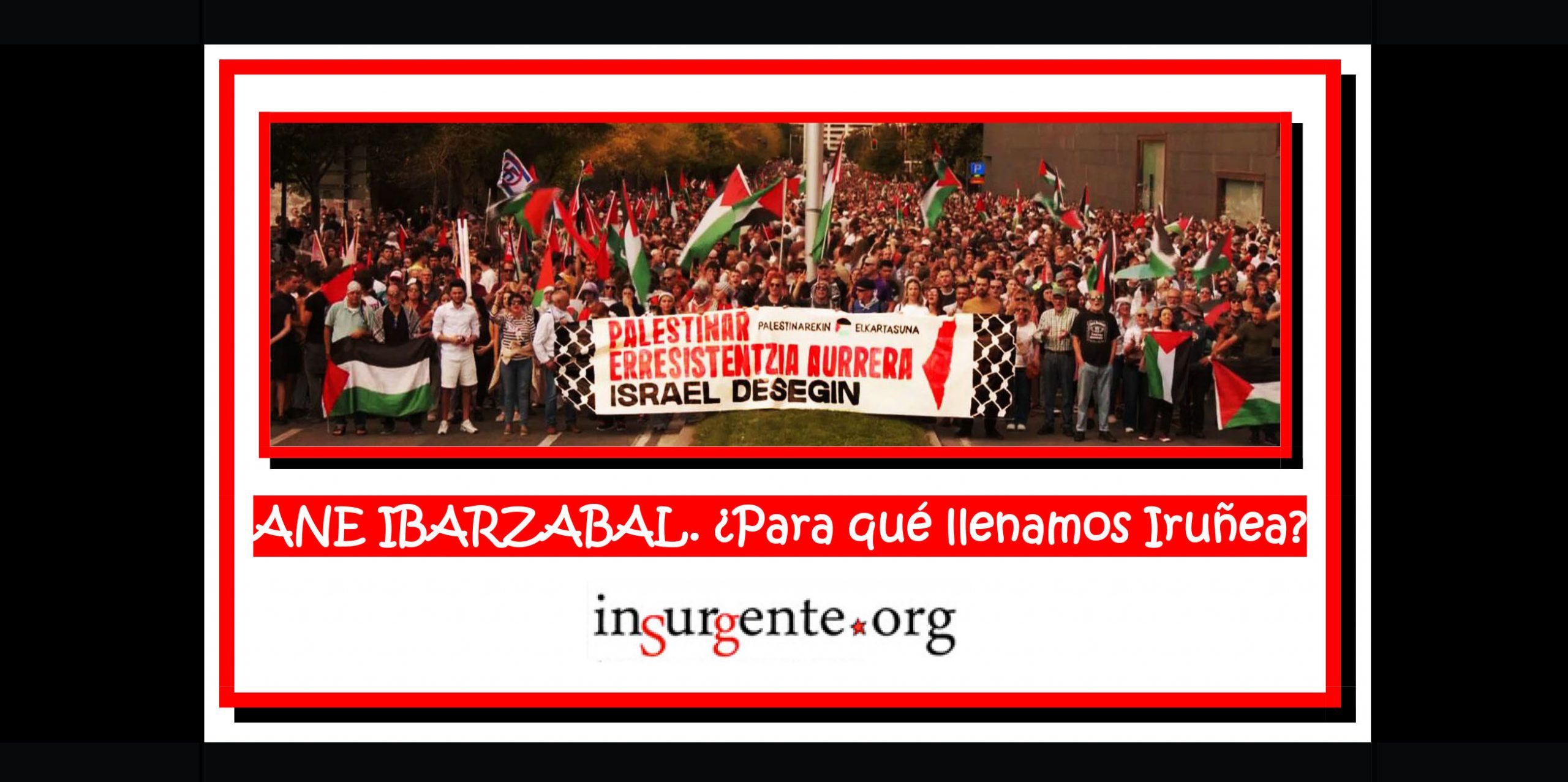 Así las cosas, desde Occidente tenemos que intentar que la correlación de fuerzas entre Palestina e Israel gire hacia el lado palestino, y en ese camino aporta, por ejemplo, la manifestación del sábado en Iruñea. Una multitud proclamamos que la única salida posible para Palestina viene de la mano de la disolución de Israel. Al margen de las dificultades que podría conllevar la materialización de dicha disolución, esta idea refuerza la lucha histórica del pueblo palestino. El hecho de que en términos ideológicos y simbólicos prevalezca el mensaje contra Israel mejora las posibles posiciones del pueblo palestino para la lucha, ya que abre un marco ideológico contra Israel. Eso da a la resistencia palestina la legitimidad que se le ha quitado durante años desde Occidente y, al contrario, le quita a Israel la legitimidad que se le ha dado. Tenemos que estabilizar un marco cultural e ideológico que permita a los palestinos conseguirlo todo.