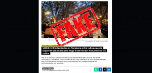Tal y como informamos, el pasado sábado de llevó a cabo en Iruñea (Nafarroa) una manifestación para exigir el derribo del franquista Monumento a los Caídos, que el tripartito del Ayuntamiento (EH Bildu, PSN y Geroa Bai) acordó mantenerlo en pie para crear, en su interior, un Museo Memorial. La convocatoria fue de asociaciones memorialistas. … Sigue leyendo Antena 3 mintió informando sobre disturbios con la policía en la manifestación de Iruñea que NO existieron