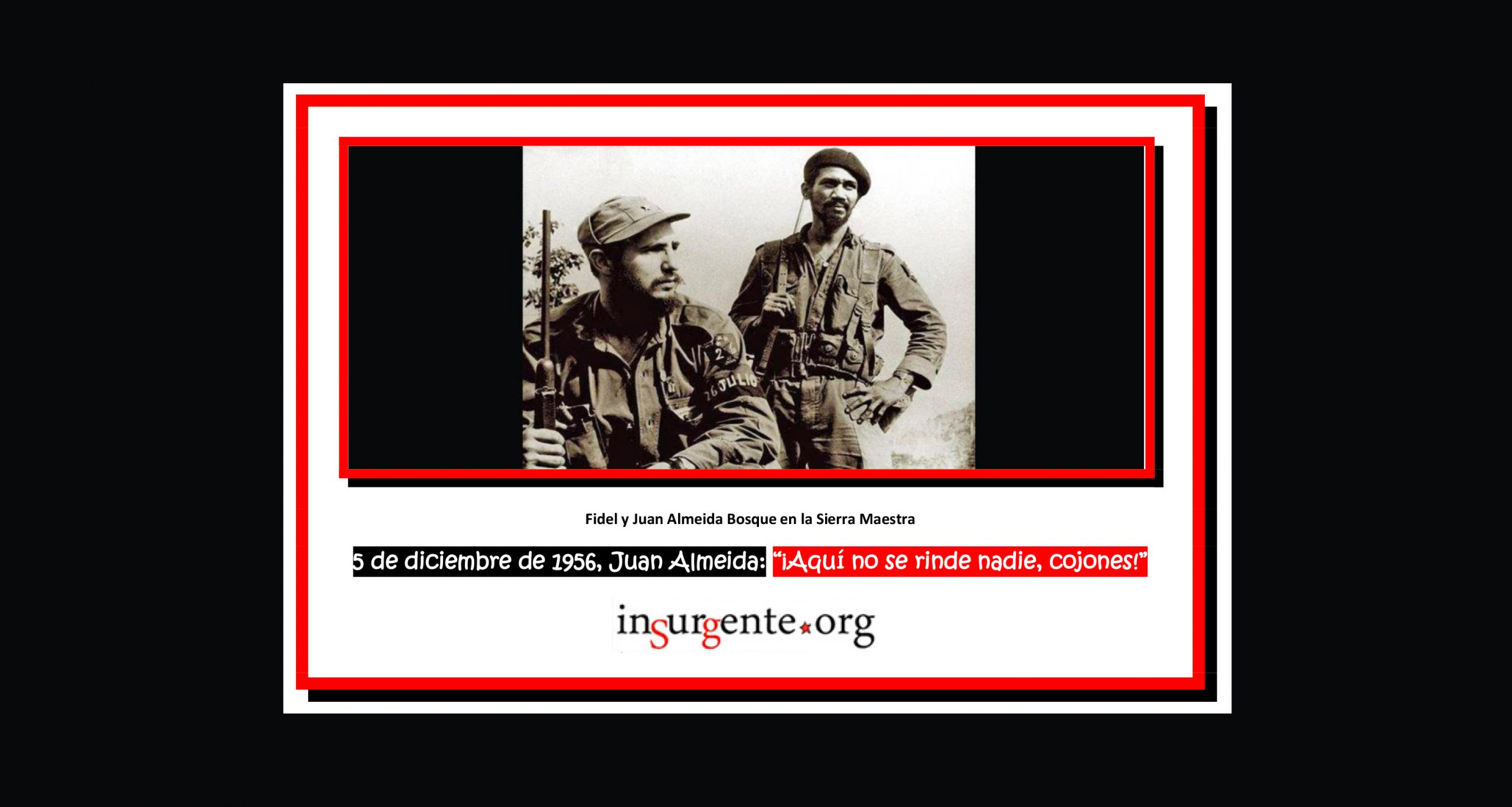 El fuego intenso del Ejército de Batista fue combinado con frecuentes llamadas para que los sitiados se rindieran. No obtuvo la respuesta que querían los tiranos, sin embargo. Observaron la resistencia del Ejército Rebelde y, sobre todo, escucharon muy nítidas y contundentes estas palabras gritadas por el capitán rebelde Juan Almeida Bosque: “¡Aquí no se rinde nadie, cojones!”.