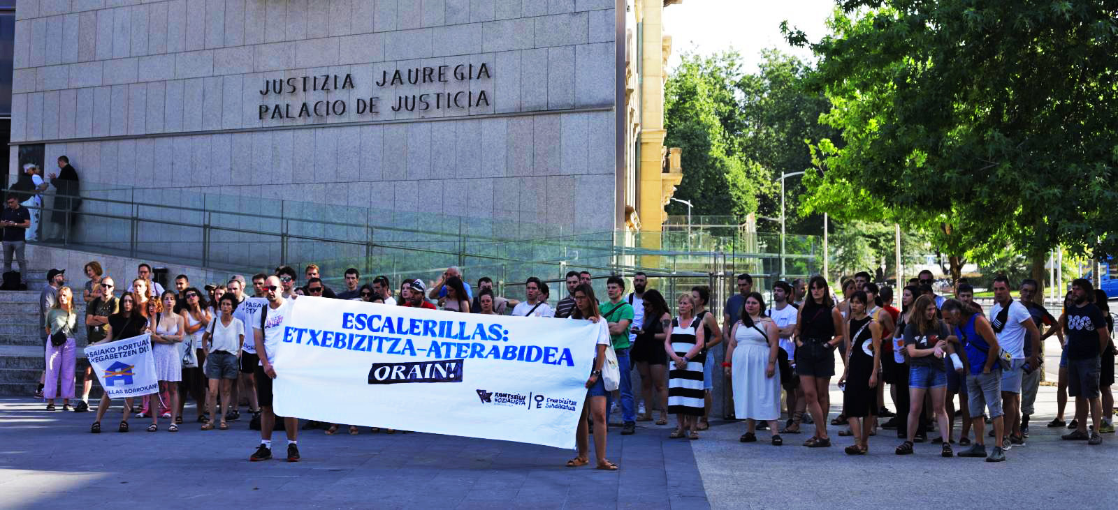 Cinco familias residentes en Escalerillas (Trintxerpe, Gipuzkoa) han sido juzgadas esta mañana en la capital de dicha provincia. Estas cinco familias no están legalmente reconocidas como arrendatarias, y, aprovechando esta situación, el Puerto de Pasaia las ha acusado de usurpación: ha mantenido el procedimiento civil, exigiendo su desalojo inmediato.