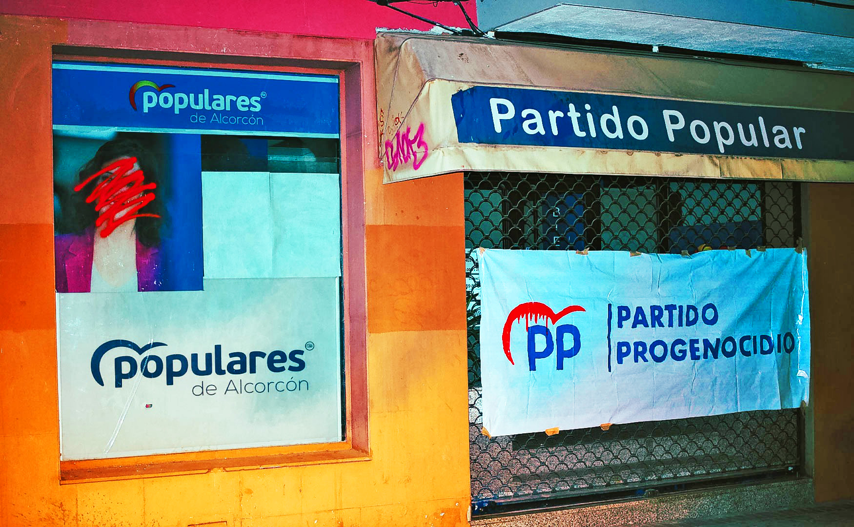 La Coordinado Juvenil Socialista (CJS) ha llevado a cabo el señalamiento a varias sedes del franquista Partido Popular (PP), tales como la de Alcobendas y Alcorcón. En esta ocasión el PP ha sido señalado por su postura progenocidio de Estado terrorista de Israel contra el pueblo de Palestina.