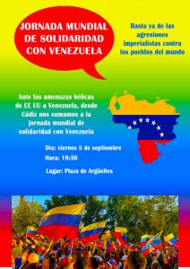 Ante las amenazas bélicas de EE.UU, Cádiz se Suma a la Jornada mundial de solidaridad con Venezuela