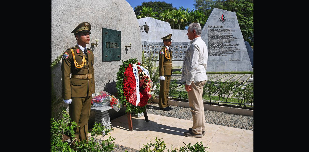 La eternidad, como siempre sucede en cada encuentro con la Patria, gravitó sobre todos a media mañana de este miércoles 13 de agosto en el Cementerio Patrimonial Santa Ifigenia, allí donde Díaz-Canel -acompañado del miembro del Buró Político y Secretario de Organización del Comité Central del Partido Comunista de Cuba, Roberto Morales Ojeda, así como de las máximas autoridades de la heroica provincia de Santiago de Cuba- rindió honores a Fidel.