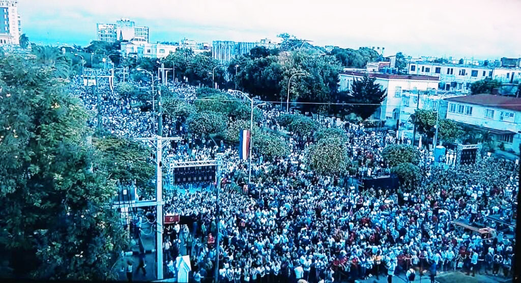 En medio de la amenaza real de una agresión militar de EE.UU. contra Venezuela, el pueblo cubano se movilizó ayer, viernes, en acto de solidaridad con la patria del Libertador Simón Bolívar y del comandante Hugo Chávez, y repudió el injerencismo de la Casa Blanca, que plantea un grave peligro para la paz en América Latina y el Caribe. Además, un total de 4 millones 388 mil 759 hijos de cubanos y cubanas firmaron en el libro de firmas en apoyo a la Revolución Bolivariana.