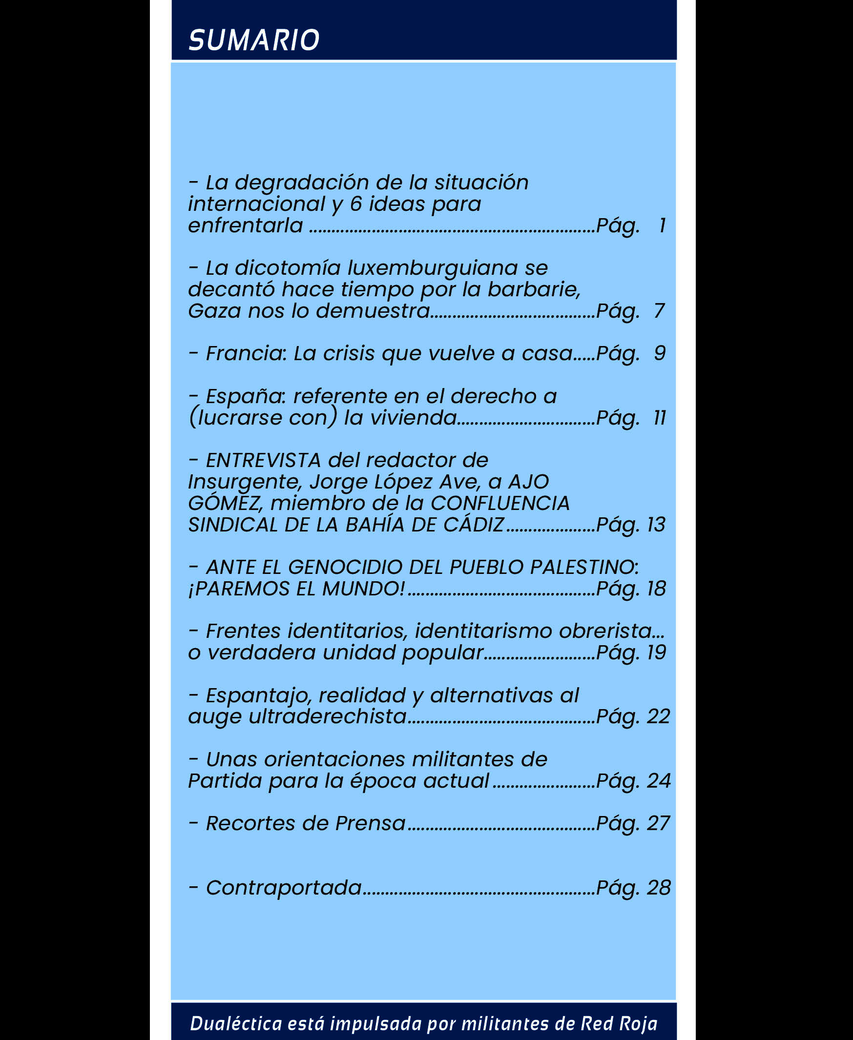 <img class="aligncenter wp-image-41372 size-full" src="https://insurgente.org/wp-content/uploads/2025/10/DUALECTICA-4-2-Sumario.jpg" alt="" width="1747" height="2131" /> <ul> <li><strong>Para abrir el Nº 4 de la revista DUALÉCTICA, clicar</strong> <a style="font-size: 1.25em;" href="https://insurgente.org/wp-content/uploads/2025/10/DUALECTICA-4.pdf"><span style="color: #0000ff;"><strong>AQUÍ</strong></span></a></li> </ul> <strong>Los tres números anteriores:</strong> https://insurgente.org/dualectica-no3-revista-de-analisis-politico-de-red-roja/ https://insurgente.org/dualectica-no2-revista-de-analisis-politico-de-red-roja/ https://insurgente.org/dualectica-no1-revista-de-analisis-politico-de-red-roja/