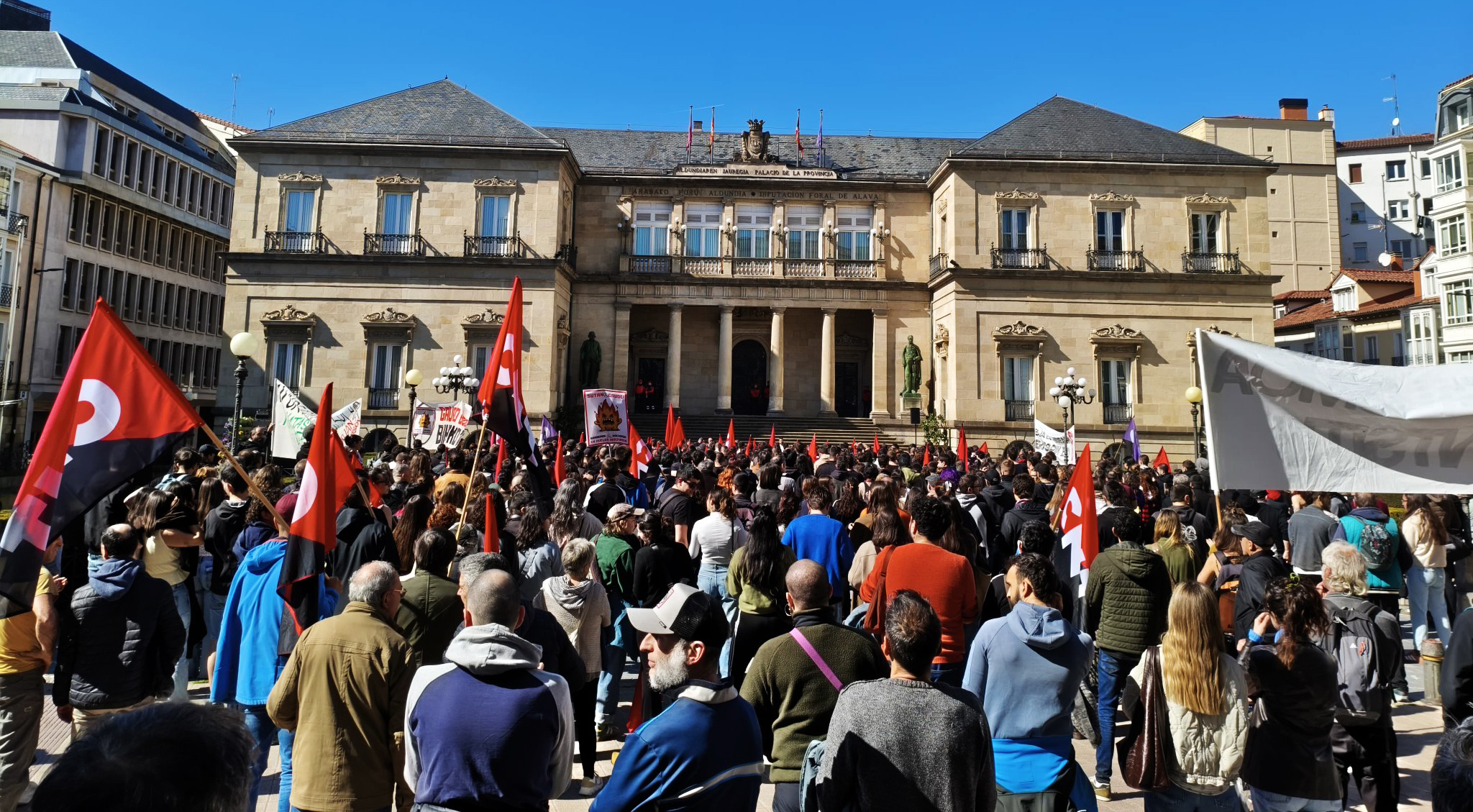 En Vitoria-Gasteiz, EHKS y la CNT han organizado conjuntamente una movilización bajo el lema: ¡Frente a la ofensiva capitalista, trabajadores a la lucha! La concentración estaba prevista para las 11:00 h en la Plaza de las Andrae Mari Zurias. Previamente a la manifestación, ambas organizaciones han realizado piquetes conjuntos dirigidos, entre otros, a la asociación patronal del sector de la hostelería, diversas mutualidades y empresas de trabajo temporal (ETT).
