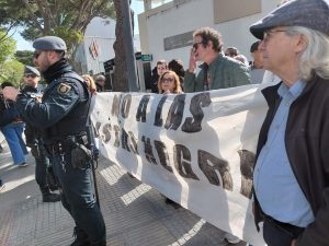 Han expulsado a todas las personas que estaban mostrando su solidaridad en la zona del aparcamiento, bajo la grúa, y han puesto carteles de zona privada, intentando impedir que se les facilite agua comida ropa….