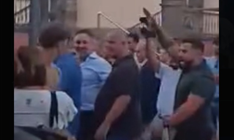 El que aparece arropando al fascista es el único concejal que tiene aquí, grita y grita “presidente, presidente. Mientras, sus “guardaespaldas” pidiendo taxis.