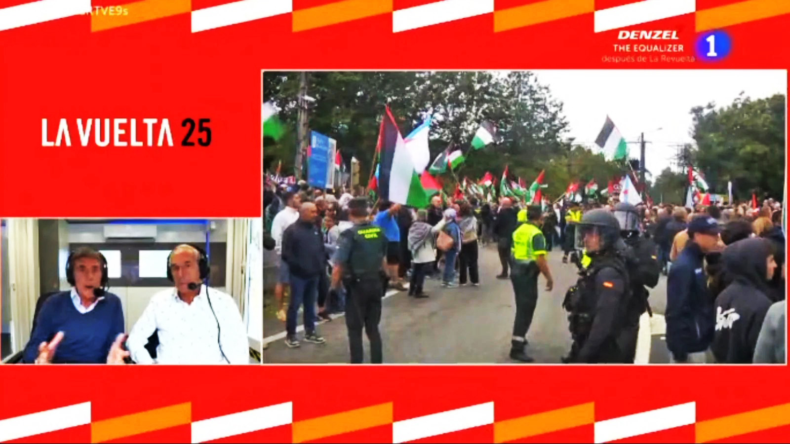 La reacción de Perico Delgado al escuchar estas palabras fue: “Creo que no son buenas noticias para La Vuelta y los corredores estas protestas que son manifiestas pero que no están actuando bien porque ya sabemos que es un problema político, no es un problema deportivo”. Delgado continuó diciendo: “Luego que cada uno se coja las cosas con el papel de fumar que quiera, pero me parece que son desafortunados estos parones de la carrera porque La Vuelta no es capaz de solucionar el problema Israel-palestino y sino lo saben los que están protestando me parece realmente vergonzoso que no lo sepan, que La Vuelta a España no es capaz de arreglar ese problema, es un problema político señores”.