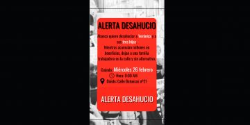 Como informamos en noviembre del pasado año, el Sindicato de Vivienda de Valladolid consiguió evitar el desahucio de Verónica y su familia. Pero mañana, miércoles, Abanca intentará desahuciar a esta misma familia trabajadora sin alternativa habitacional en el Barrio España de Valladolid. El Sindicato de Vivienda de Valladolid anuncia que estará en frente de los … Sigue leyendo El Sindicato de Vivienda de Valladolid llama a intentar parar un desahucio