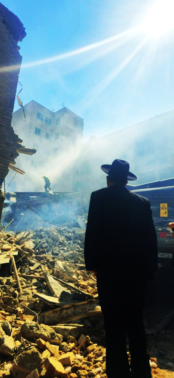 El rabino Yunes Hamami Lalezar, líder de la comunidad judía de Irán, visita la sinagoga destruida en un ataque israelí-estadounidense en Teherán.