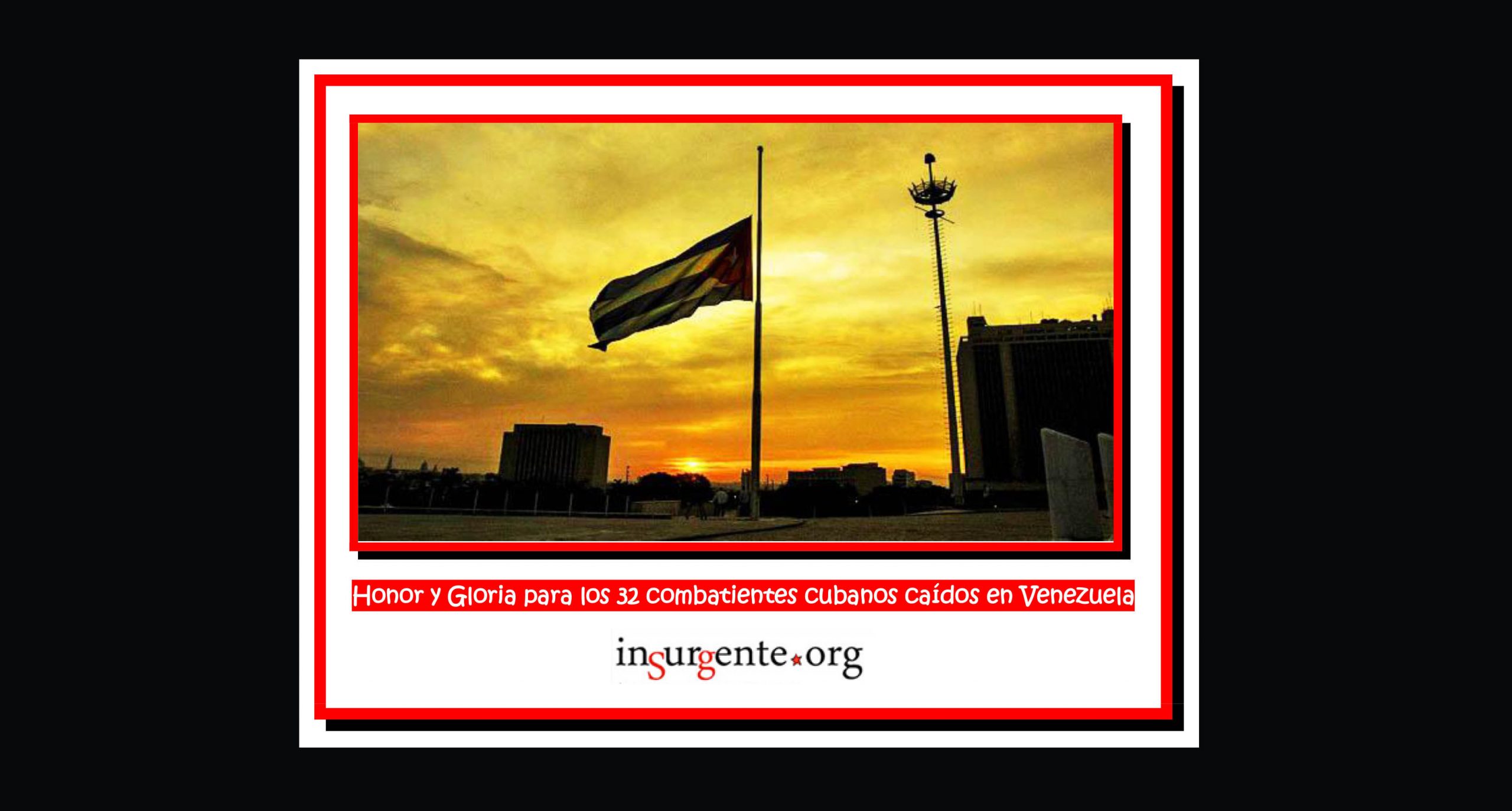 Víctimas de un nuevo acto criminal de agresión y terrorismo de Estado, perpetrado contra la hermana República Bolivariana de Venezuela por parte de Estados Unidos, perdieron la vida en acciones combativas y tras férrea resistencia 32 cubanos, quienes cumplían misiones en representación de las Fuerzas Armadas Revolucionarias y el Ministerio del Interior, a solicitud de órganos homólogos del país sudamericano.