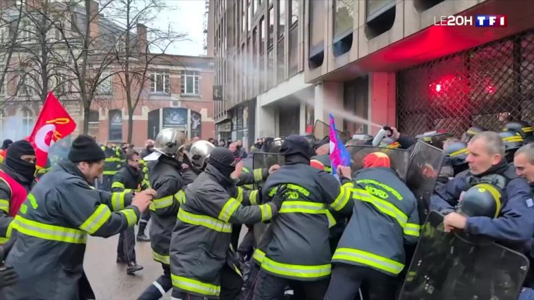 Sí, lucharon los bomberos franceses en Lille por una condiciones laborales dignas y contra los recortes del gobierno de Macron, se enfrentaron y se defendieron cuerpo a cuerpo ante el empuje de las fuerzas represivas.