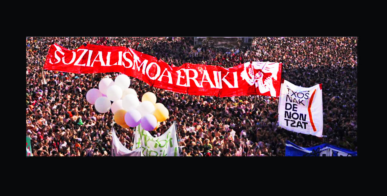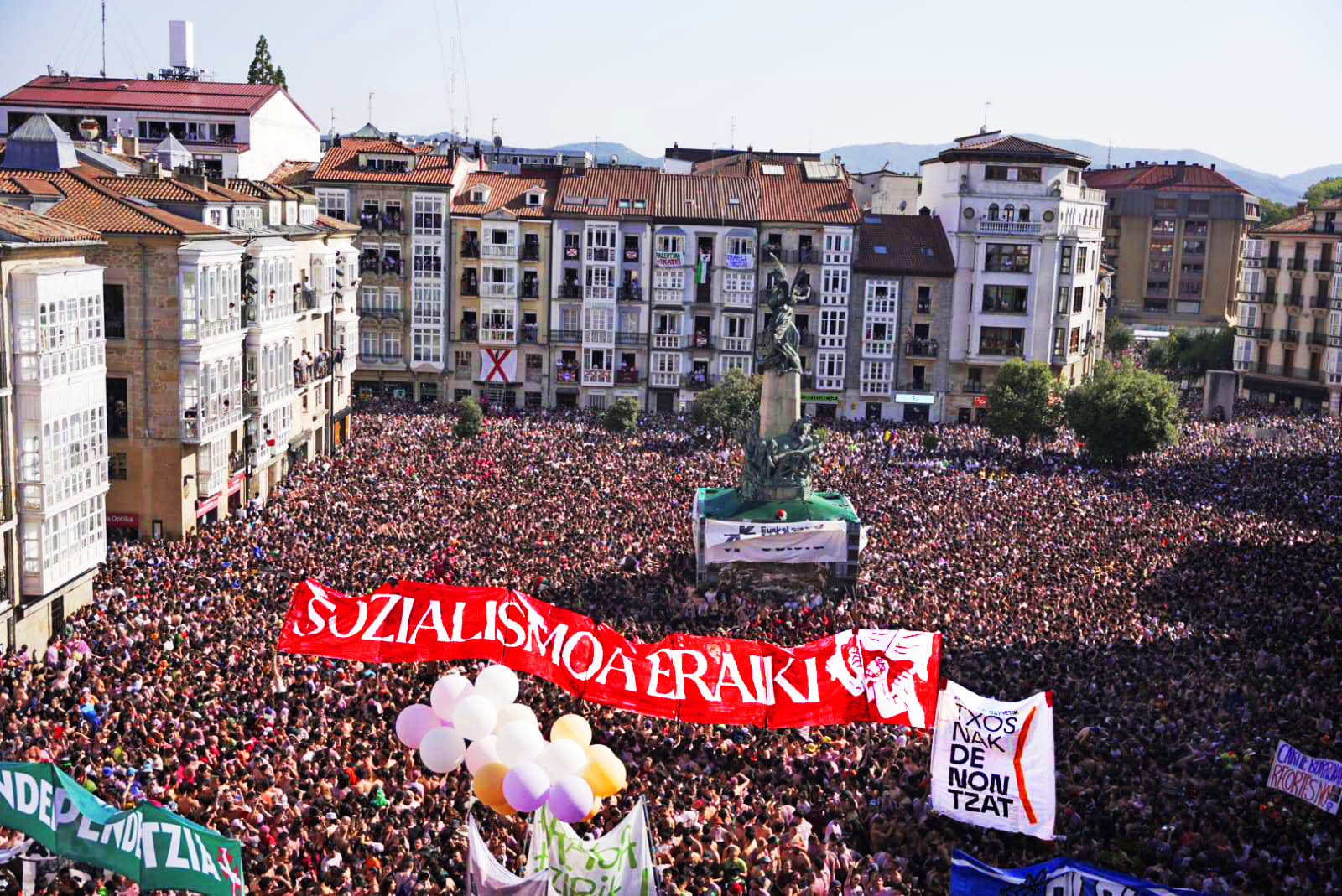 Ayer, 4 de agosto, con el txupinazo y la bajada de Celedón se iniciaron las fiestas de Vitoria-Gasteiz. En medio de de la plaza de la Virgen Blanca de la capital alavesa, se pudo observar un pancarta del Movimiento Socialista: «Sozialismoa eraiki» (construyendo el socialismo). También fue desplegada otra reivindicando «Txosnak denontzat» (Txosnas para todos).