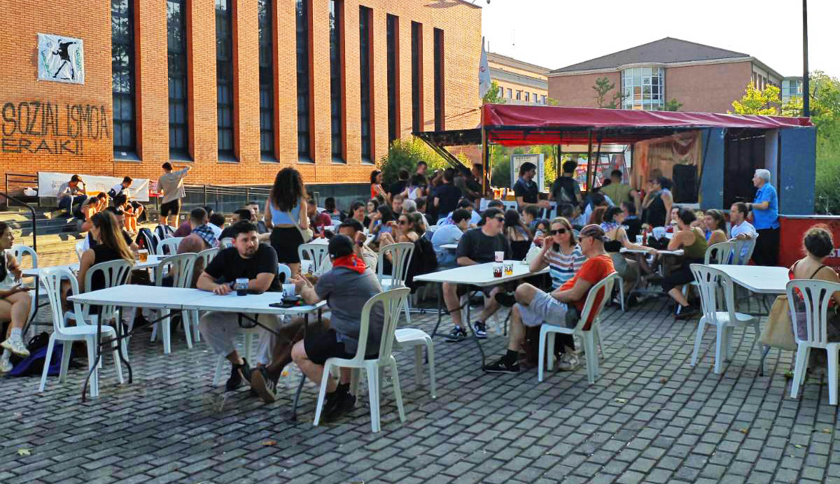 Dado que continúa el veto político, GKS y el Sindicato Socialista de Vivienda han vuelto a montar su txosna fuera del recinto gestionado por el Comité de Txosnas. Un año más, la ha montado desafiando a la prohibición, frente a la Facultad de Filosofía y Letras de Vitoria-Gasteiz (Álava).