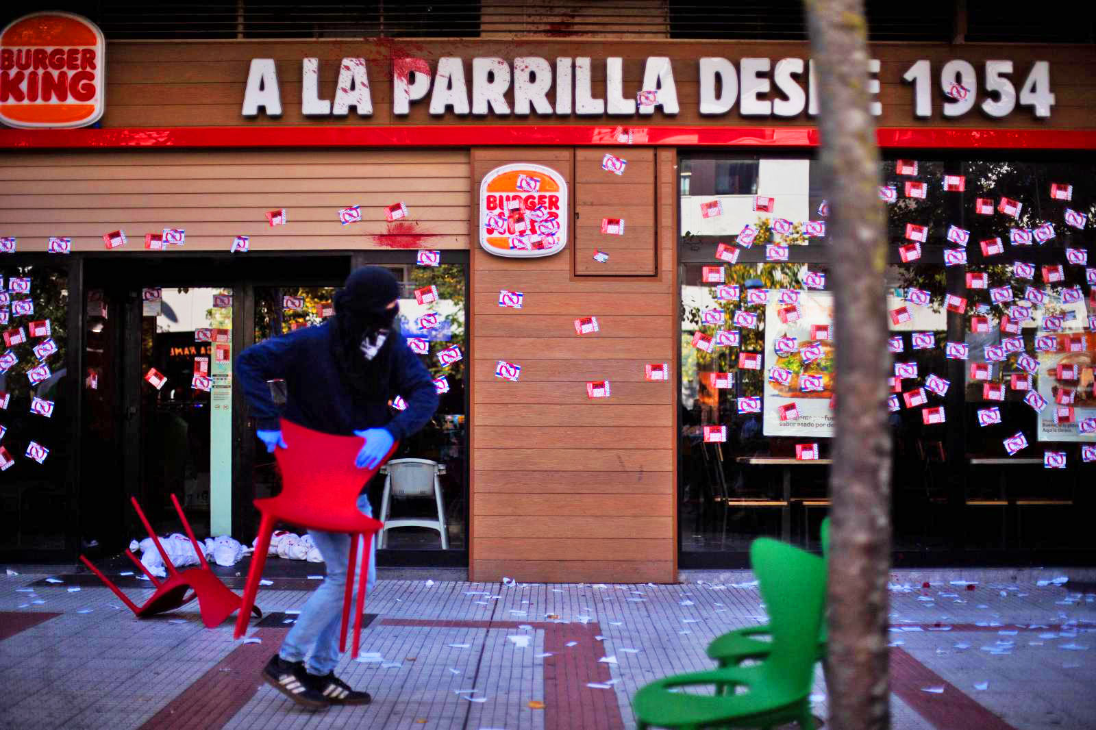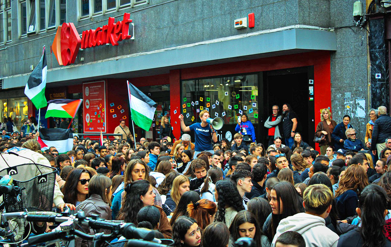 La manifestación de esta última ciudad se ha sumado al llamamiento de la plataforma Palestinarekin Elkartasuna. Cabe subrayar que la Policía Nacional ha cargado contra los manifestantes tras acercarse estos a un establecimiento de Burger King, al que forrado con pegatinas a favor de Palestina y contra el Estado sionista.