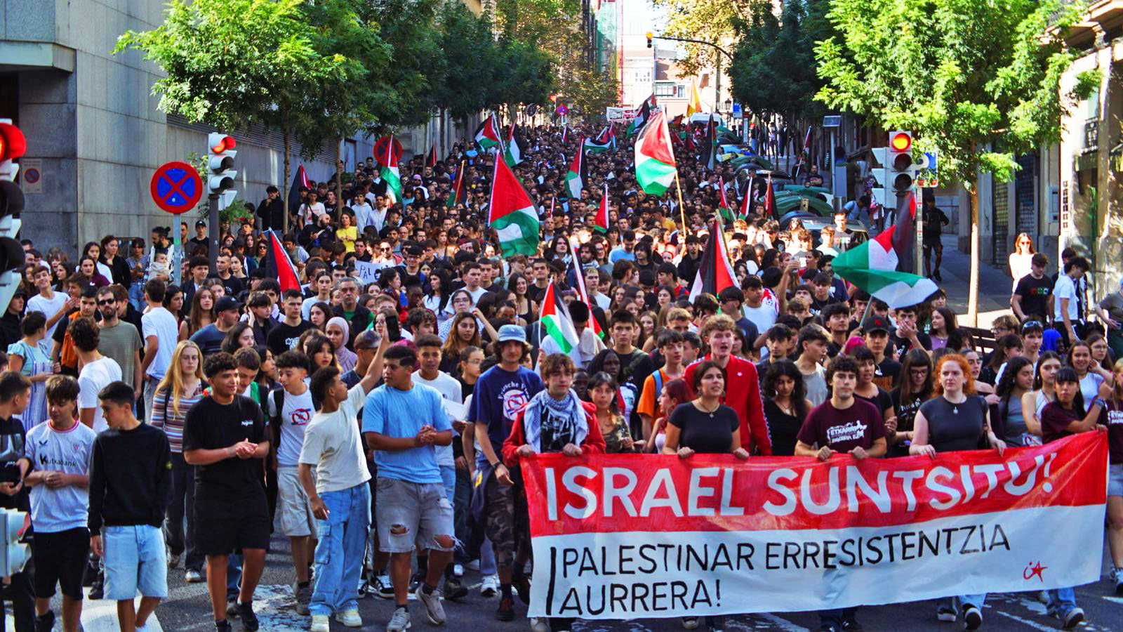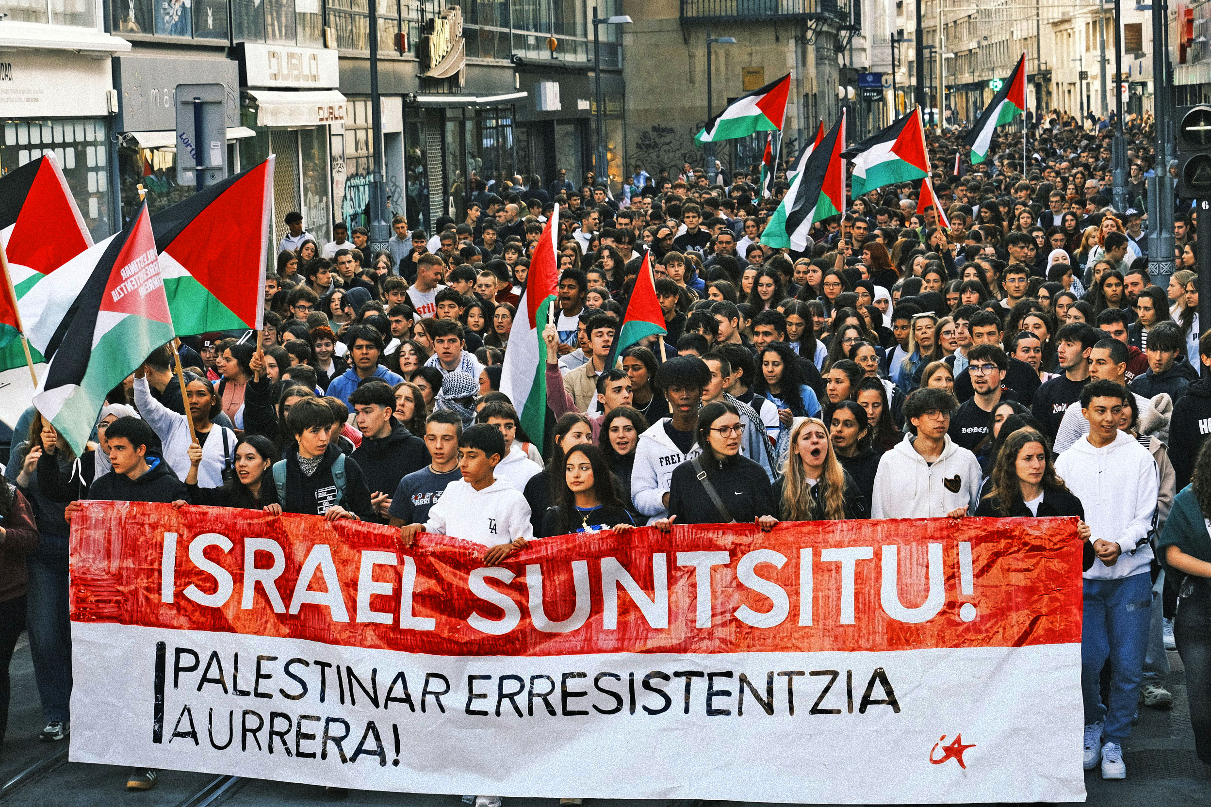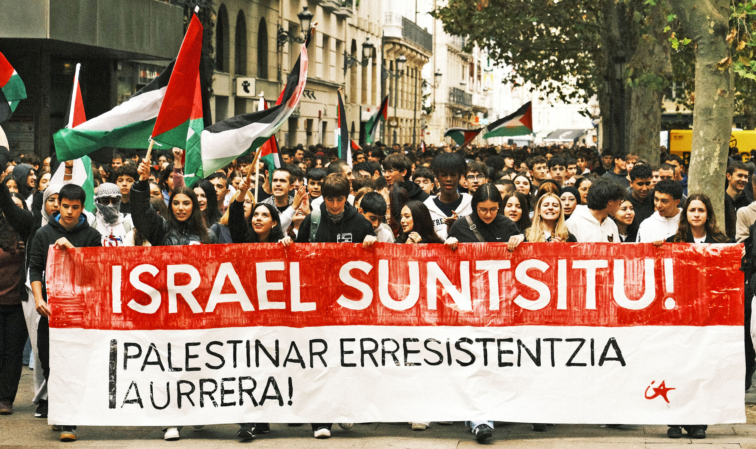 El pasado 2 de octubre, Ikasle Abertzaleak (IA), organización estudiantil del Movimiento Socialista, llevó a cabo una huelga general y movilizó a miles de estudiantes en las cuatro capitales del sur de Euskal Herria. Hoy, 15 de octubre, ha vuelto a movilizarlos con el mismo objetivo: apoyar a la resistencia palestina y por la disolución del Estado de Israel.