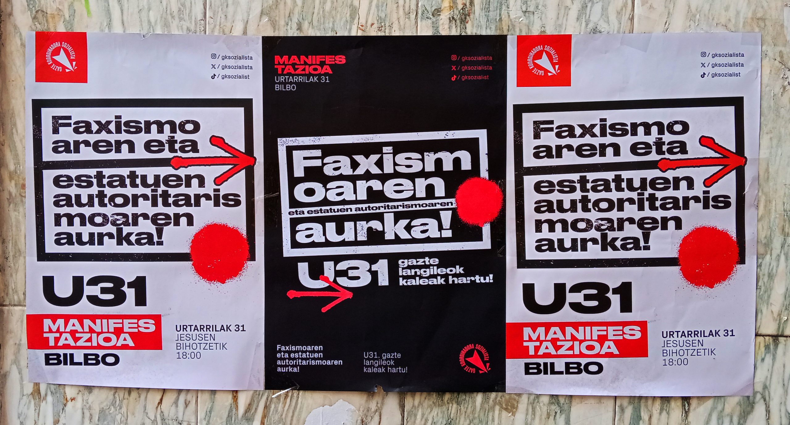Mañana sábado hay una importante convocatoria. Se trata de dos manifestaciones que Gazte Koordinadora Sozialista (GKS) ha convocado con este lema: “Faxismoaren eta estatuen autoristarismoaren aurka!” (¡Contra el fascismo y el autoritarismo de los estados!”).