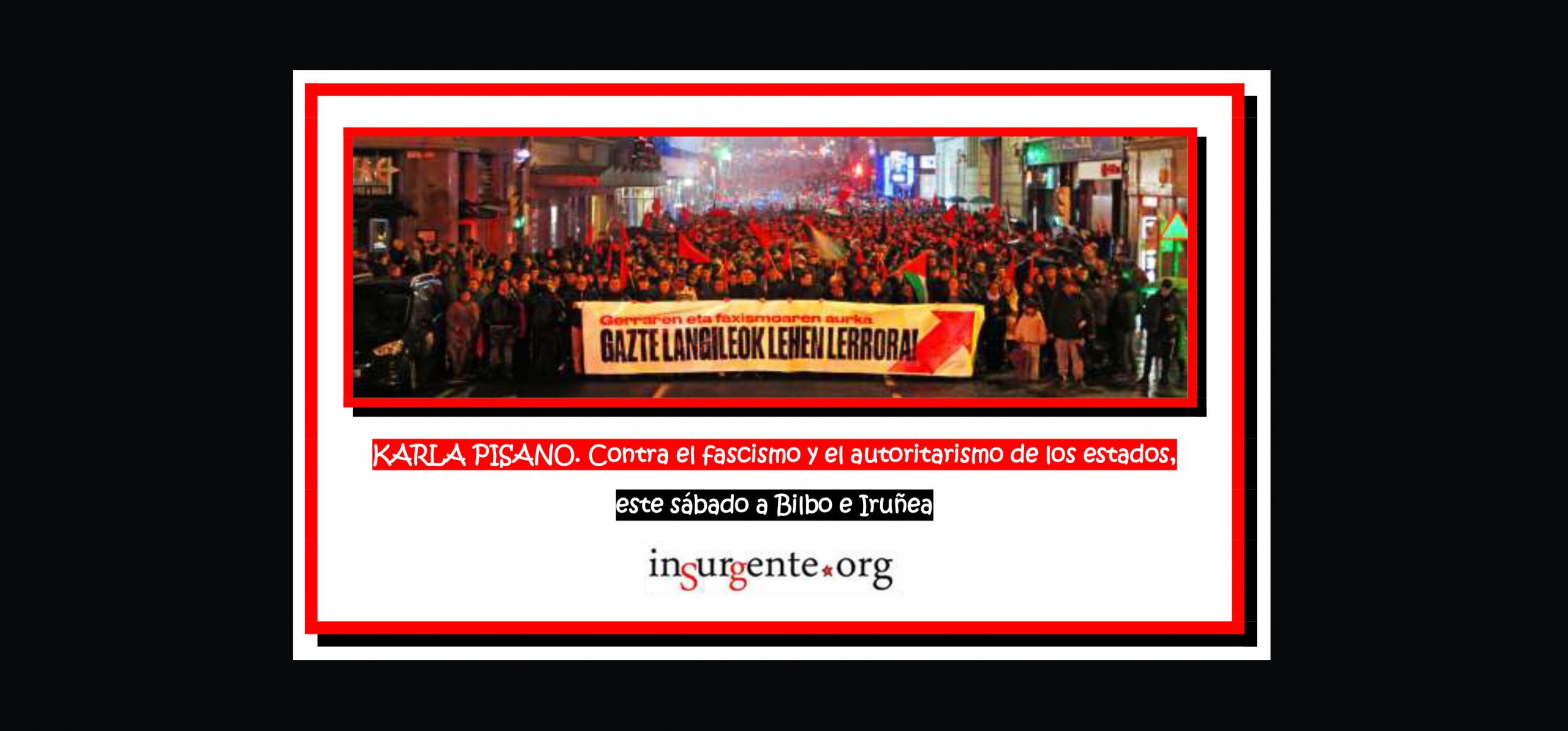 KARLA PISANO. Contra el fascismo y el autoritarismo de los estados, este sábado a Bilbo e Iruñea