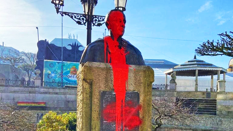 GKS arrojó pintura roja sobre el busto de Fraga Iribarne en su pueblo natal