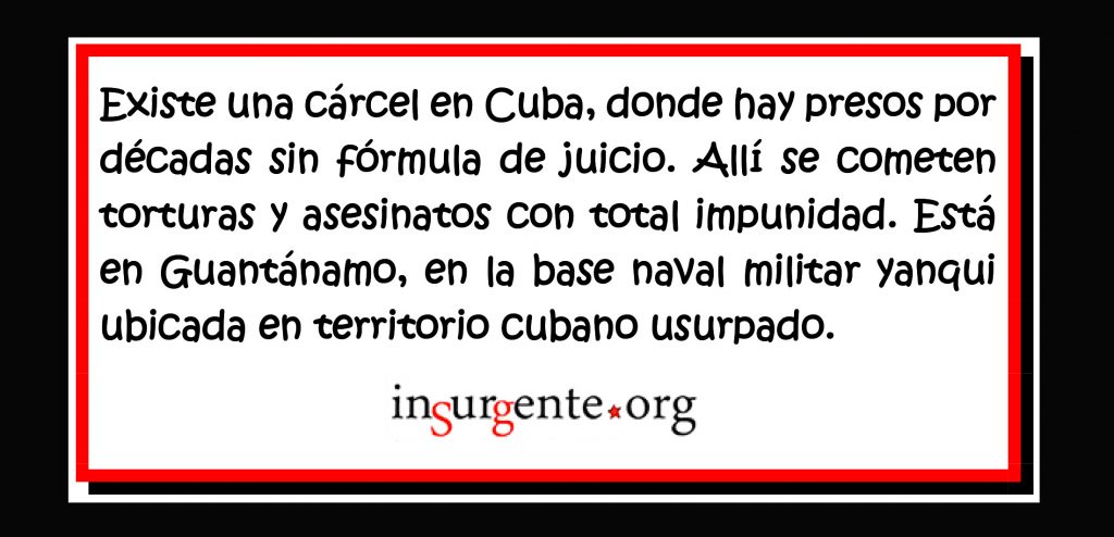 Se van a cumplir 122 años desde que Estados Unidos se apropió del territorio guantanamero donde instaló su base naval que hoy todavía no ha devuelto ni tiene intenciones de devolver. Hagamos un repaso de lo sucedido; sirva también para exigir su devolución a sus dueños naturales: el pueblo de Cuba. Un poco de historia … Sigue leyendo La base naval de Guantánamo o la infamia yanqui en territorio cubano usurpado