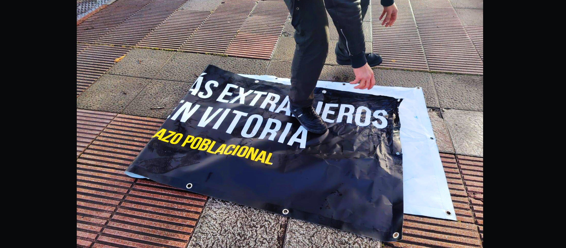Ayer informábamos que habían aparecido pancartas con mensajes racistas y fascistas en Vitoria-Gasteiz. Fueron obra de Vox. Sin embargo, duraron desplegadas más que unos minutos. Sucedió que militantes de Gazte Koordinadora Sozialista (GKS) de Gasteiz las retiraron.