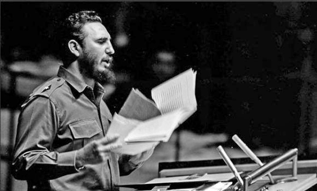 En el hotel Theresa, Fidel recibió la visita de numerosos líderes mundiales, así como de diferentes personalidades norteamericanas, entre las que se encontraba el citado Malcolm X… Y por fin, llegado el esperado día, el presidente de la Asamblea General, Frederik H. Boland, invitó a Fidel a ocupar la tribuna; eran las 3:55 p.m. del 26 de septiembre de 1960. Segundos después, el Comandante en Jefe comenzó su histórico discurso ante 819 delegados de 96 naciones, entre los que se encontraban quince jefes de Estado y veintisiete ministros de Relaciones Exteriores. La prensa de todo el mundo estaba representada con alrededor de 1.200 periodistas; aquellos y éstos escucharon con atención manifiesta la encendida intervención del líder de la Revolución Cubana.