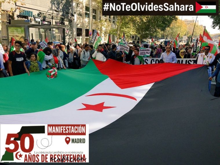 Unas diez mil personas, según los organizadores, han recorrido este sábado las calles de Madrid para exigir la “libertad e independencia” del Sáhara Occidental en una marcha organizada desde Atocha hasta Sol por la Coordinadora de Asociaciones de Amistad con el Pueblo Saharaui (CEAS) y bajo el título “La existencia también es resistencia: 50 años de ocupación”.
