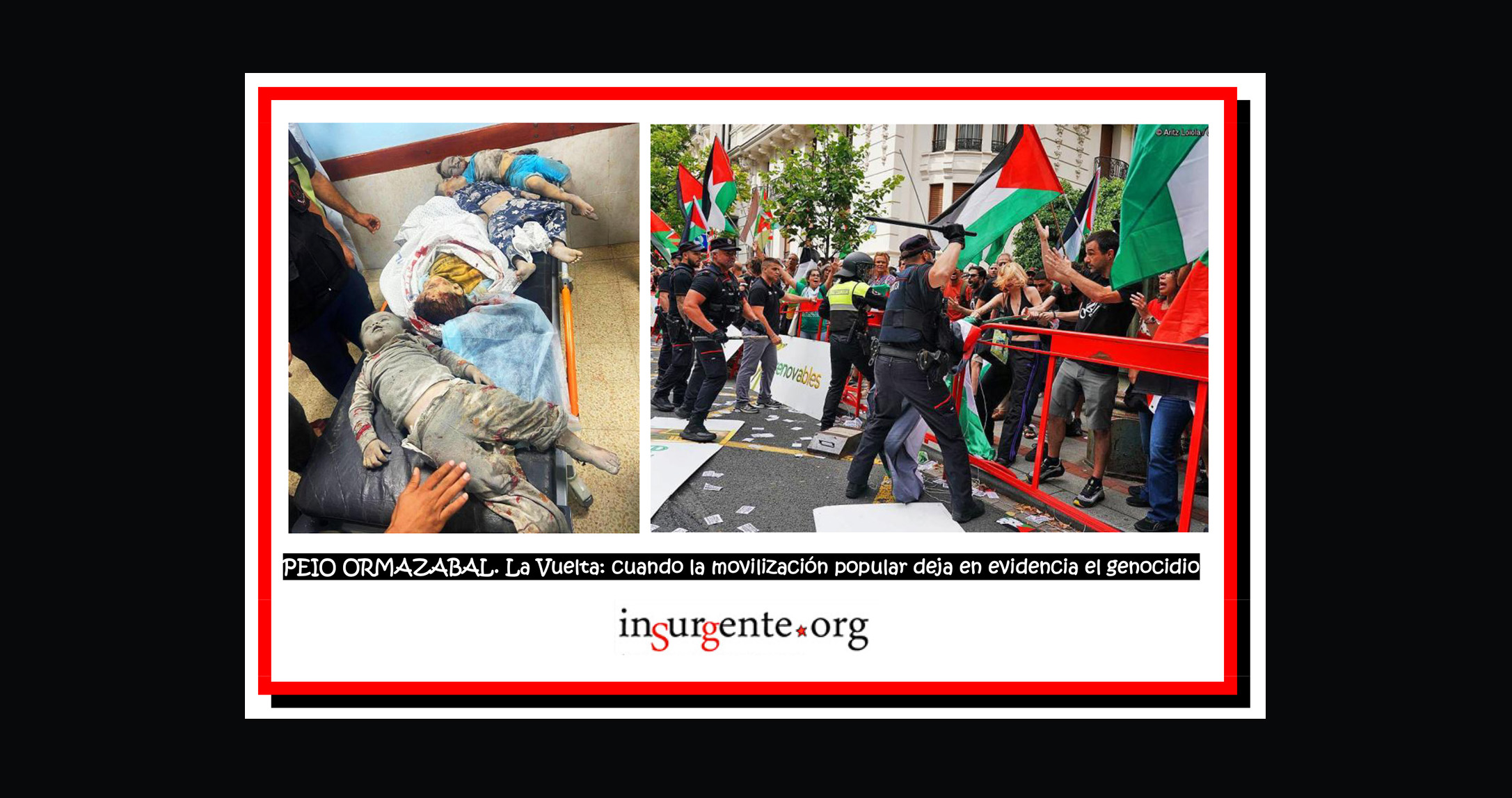 El equipo sionista, Israel Premier Tech, publicó un comunicado, indicando que lo acontecido en Bilbo no era solo “dangerous”, sino también “counterproductive to their cause”. A esta línea de argumentación se ha sumado efusivamente la plana mayor del PNV, lehendakari incluido, criticando la forma de la protesta y apelando a la deportividad, el civismo y el respeto. Que los principales afectados por el boicot lo consideren contraproducente ya debería hacernos pensar que las acciones de protesta van bien encaminadas.