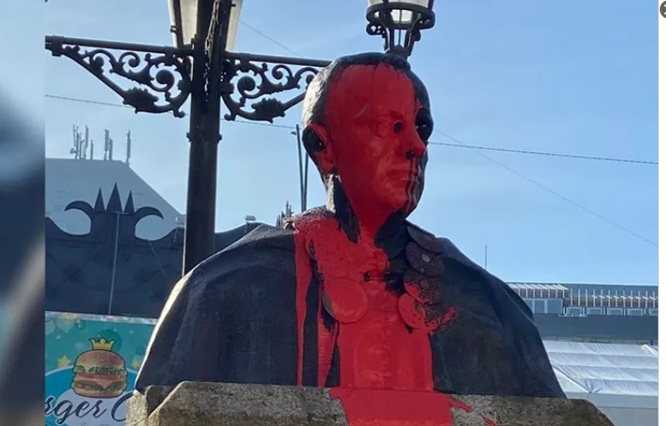 El busto de Manuel Fraga, fundador del PP, en su localidad natal de Vilalba (Lugo) ha sido rociado con pintura roja en memoria de lo ocurrido en Vitoria un 3 de marzo. El PP ha reaccionado con el anuncio de una denuncia ante la Guardia Civil que formalizarán el lunes.