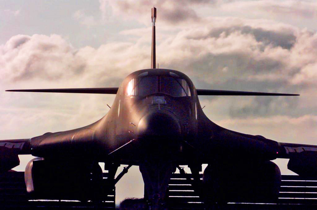 Un fotógrafo de la AFP observó un bombardero Lancer de la Fuerza Aérea estadounidense B-1 aterrizando en Fairford hoy.