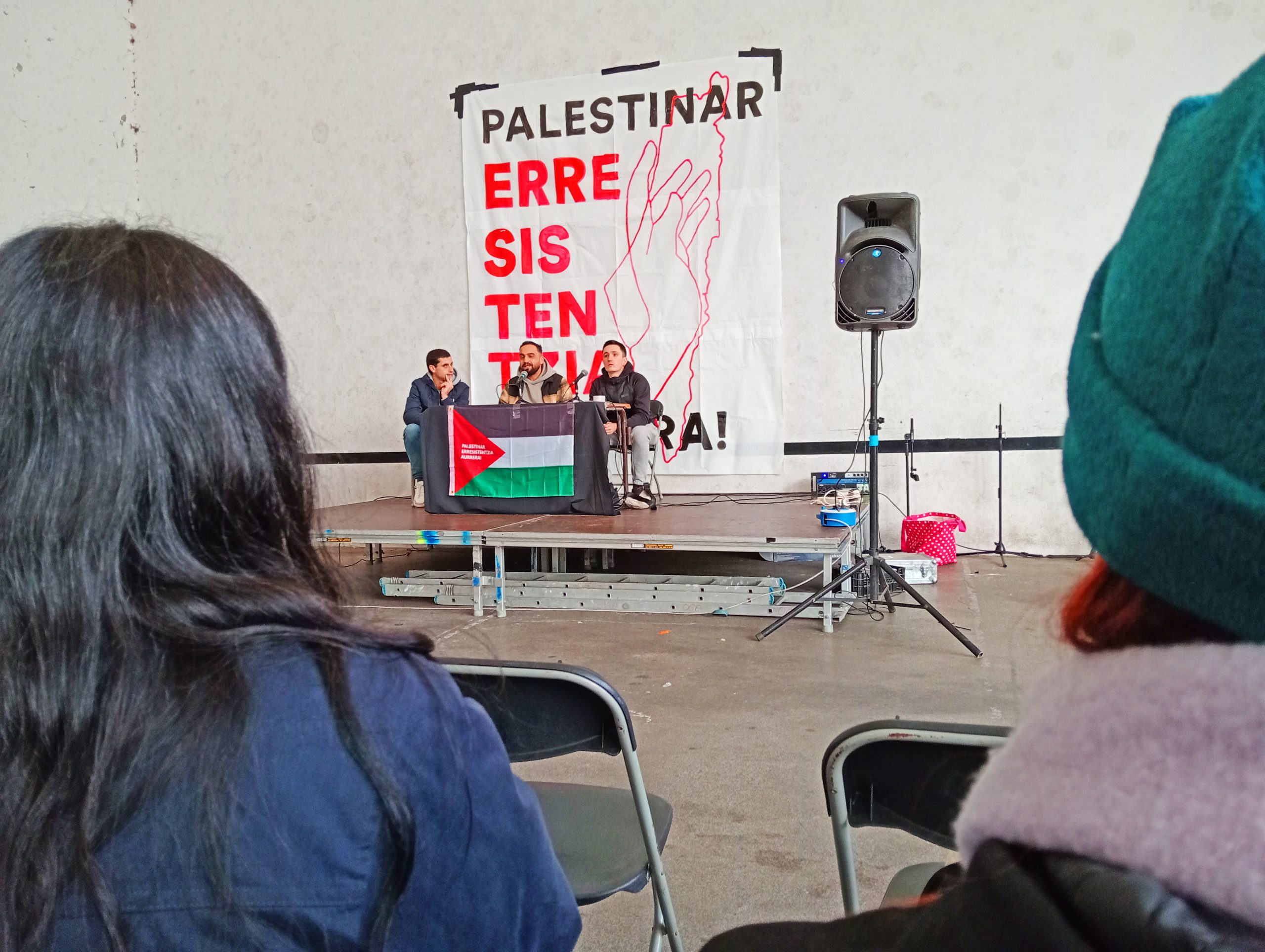 En el frontón hubo comida y, posteriormente, en el mismo lugar, una interesante conferencia. Esta contó con la participación de Mohamed (palestino), entre otros, que hizo un repaso histórico hasta nuestros días y subrayó la legitimidad y el necesario papel de la resistencia en todas sus formas. También se dejó clara la negativa a aceptar la falsa solución de los dos Estados, que el Estado sionista debe dejar de existir.