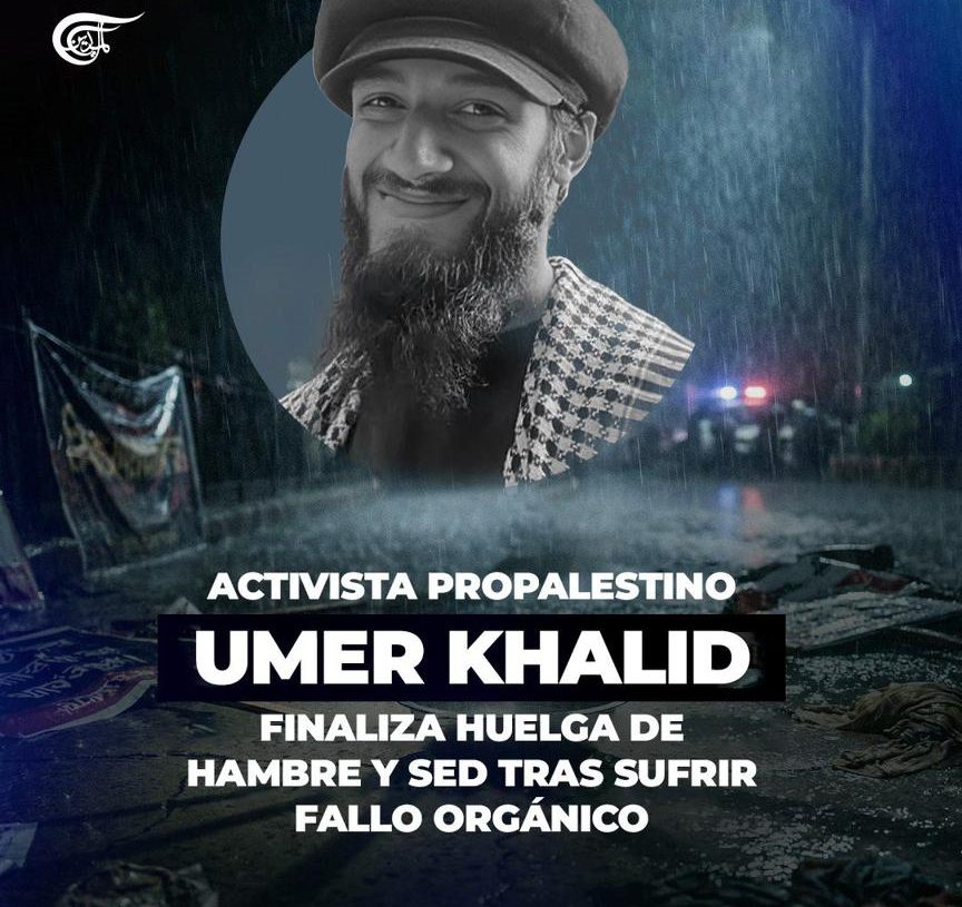 ACTIVISTA PROPALESTINO UMER KHALID FINALIZA HUELGA DE HAMBRE Y SED TRAS SUFRIR FALLO ORGÁNICO