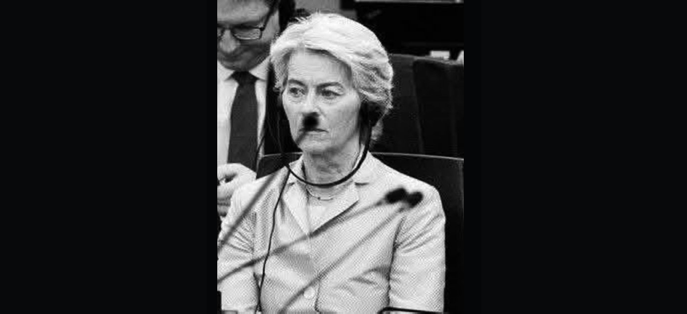 No sabemos quien es el autor de la fotografía, tampoco cuáles eran sus intenciones al aprestar el disparador de su cámara fotográfica. Lo que sí podemos decir, sin miedo a equivocarnos, es que el resultado final de la imagen, con la inestimable ayuda del micrófono, es muy real. El retrato refleja muy bien el carácter fascista de la presidenta de la Comisión Europea, Ursula von der Leyen. ¿Alguna duda al respecto?