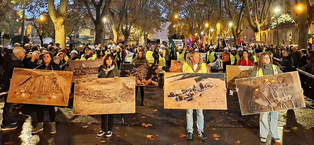 Ante la negativa por parte de EH Bildu, PSN y Geroa Bai de cancelar el acuerdo que firmaron para mantener en pie este edificio franquista y crear en su interior un Museo Memorial, las asociaciones memorialistas de Iruñea convocaron a una manifestación. Esta se llevó a cabo ayer, recorriendo las calles de la capital de Nafarroa para volver a pedir la demolición del monumento a los caídos.