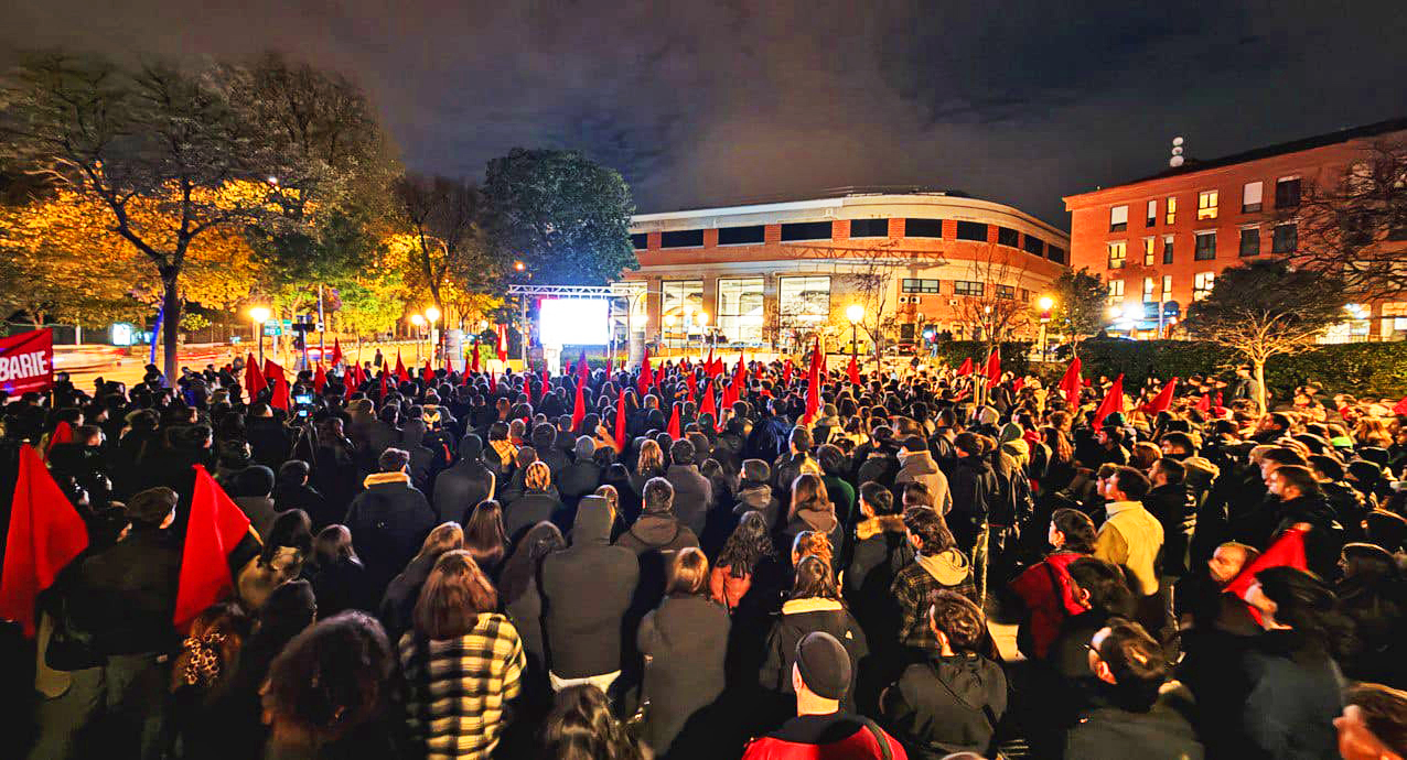 Tras esta intervención, subió al escenario una compañera para referirse al contexto político y social actual. Esta rechazó la narrativa mediática de una juventud “apática” y alertando del avance de posiciones reaccionarias en racismo, clasismo y machismo expresó: “Nos dice la prensa que al parecer hoy toda la juventud es de derechas. Nos dicen también que la ola reaccionaria es imparable, que no hay nada que hacer, que la única opción es agachar la cabeza y buscar la protección de Pedro Sánchez y de una izquierda que ya ha demostrado su fracaso”. Y añadió que “la falsa política de oportunistas y burócratas luchando por sillones es la que crea el campo para el avance del fascismo”, de modo que CJS lucha, entre otros frentes, “contra el giro autoritario, contra el imperialismo y sus guerras”, subrayando la necesidad de “recomponer un partido político y un programa revolucionario” como parte de un proyecto de ruptura con el orden surgido tras 1978.
